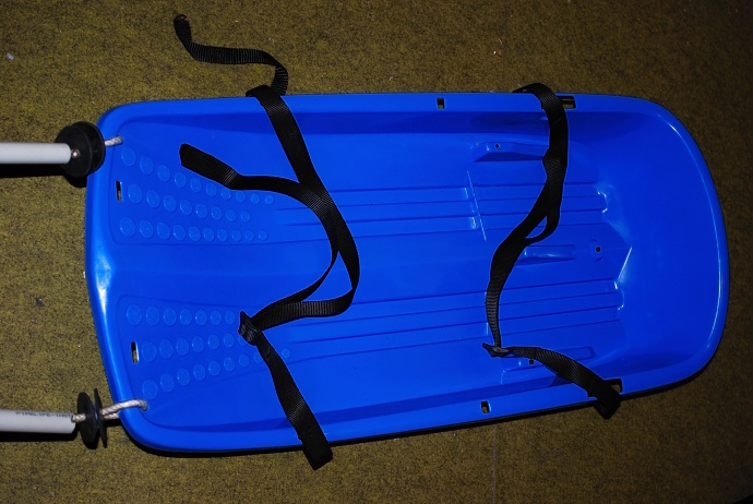 Na zajištění nákladu je potřeba saně vybavit i stahovacími popruhy. Potřebný materiál se dá sehnat do 100kč.