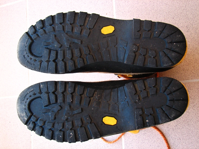Co se týká voděodolnosti, boty nebyly během dvou let používání impregnovány, zcela vystačila funkční membrána GTX. Až během letošní zimy, při delší době chůze rozbředlým mokrým sněhem, botky více navlhly. Nutno dodat, že celý svršek boty byl promočený, ovšem vlkost uvnitř bot byla stále minimální. Od letošní sezóny již budu boty pravidelně impregnovat sprejem (déšť, zimní podmínky). Z hlediska tvrdosti jsou trekovky stále dosti tvrdé (kat. C), ovšem díky použití lehkých syntetických materiálů se dají využít i v létě (např. výstupy v Tatrách apod.). Boty jsem letos využil i při lezení v ledu, zde se však tvrdost bot ukázala jako limitující faktor. I přesto se však při krátkodobých výjezdech na ledy dají s přehledem použít...