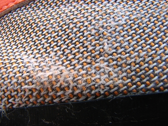 Detailní pohled na systém šněrování a upínání. Syntetické materiály jsou náchylnější k oděru (vpravo).